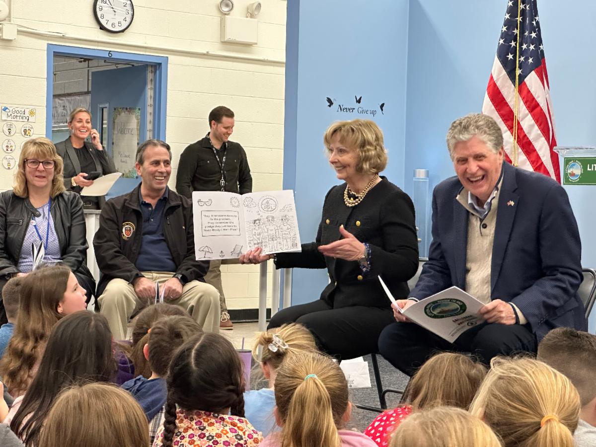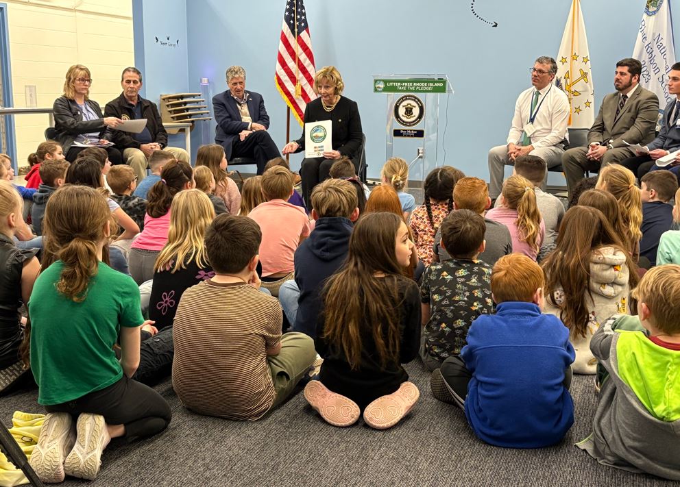The coloring book is the latest resource to encourage students to adopt sustainable practices and work together to keep Rhode Island communities clean. As part of the event, the First Lady and Governor read the book to 2nd and 3rd grade students and handed out copies to the school.