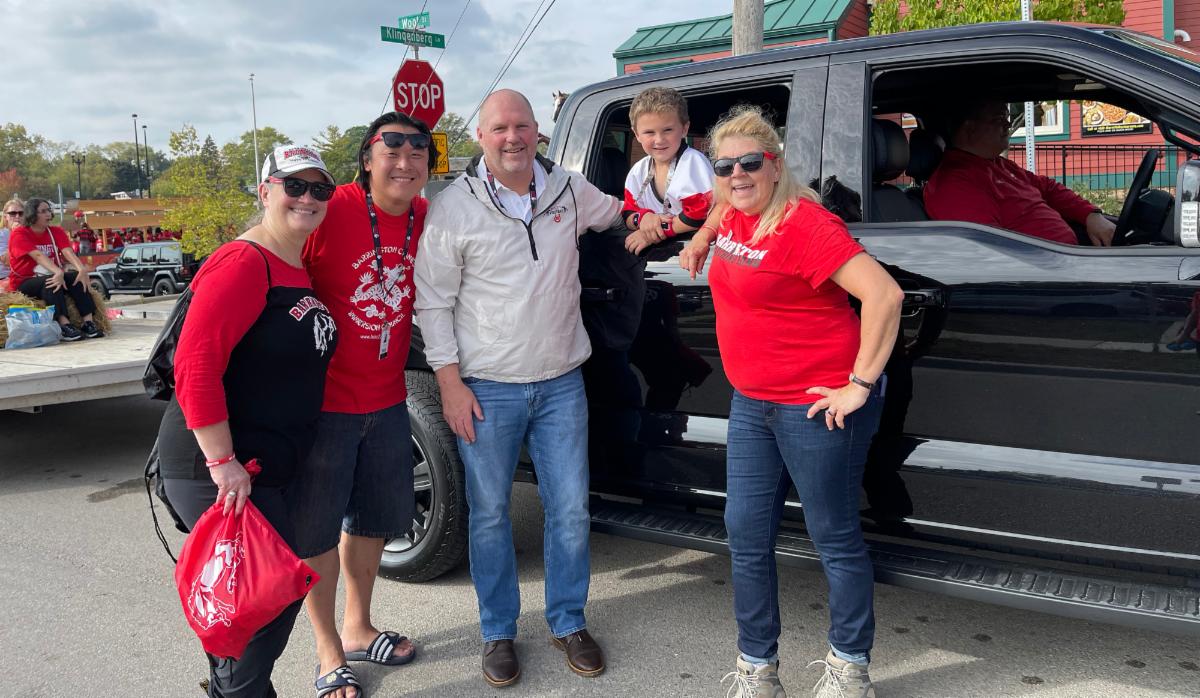 Dr. Hunt and Board of Education members Sandra Ficke Bradford, Steve Wang and Leah Collister-Lazzari get ready to participate in the Homecoming parade.