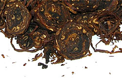 Also known as Navy Plug, it was given the name because sailors would fill a long canvas tube with Tobacco and flavorings (rum, fruits, spices), then twist the tube tight: mimicking the Pressing process. This technique created a dense "rope" of Tobacco about an inch thick. When a piece of the Tobacco is sliced/cut off it is called a Plug: this must be