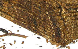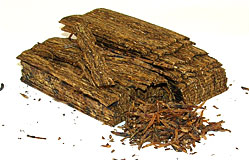 Pipe Tobacco which has been Pressed into bricks and then sliced into broad, flat flakes. Flake Cut Tobaccos, as depicted here, can be comprised of many different Tobaccos. These Tobaccos benefit from the Pressing because it allows their flavors, densities, and moisture levels to marry: it will also help them synergize more as they age. Flake Cut Tobaccos should be