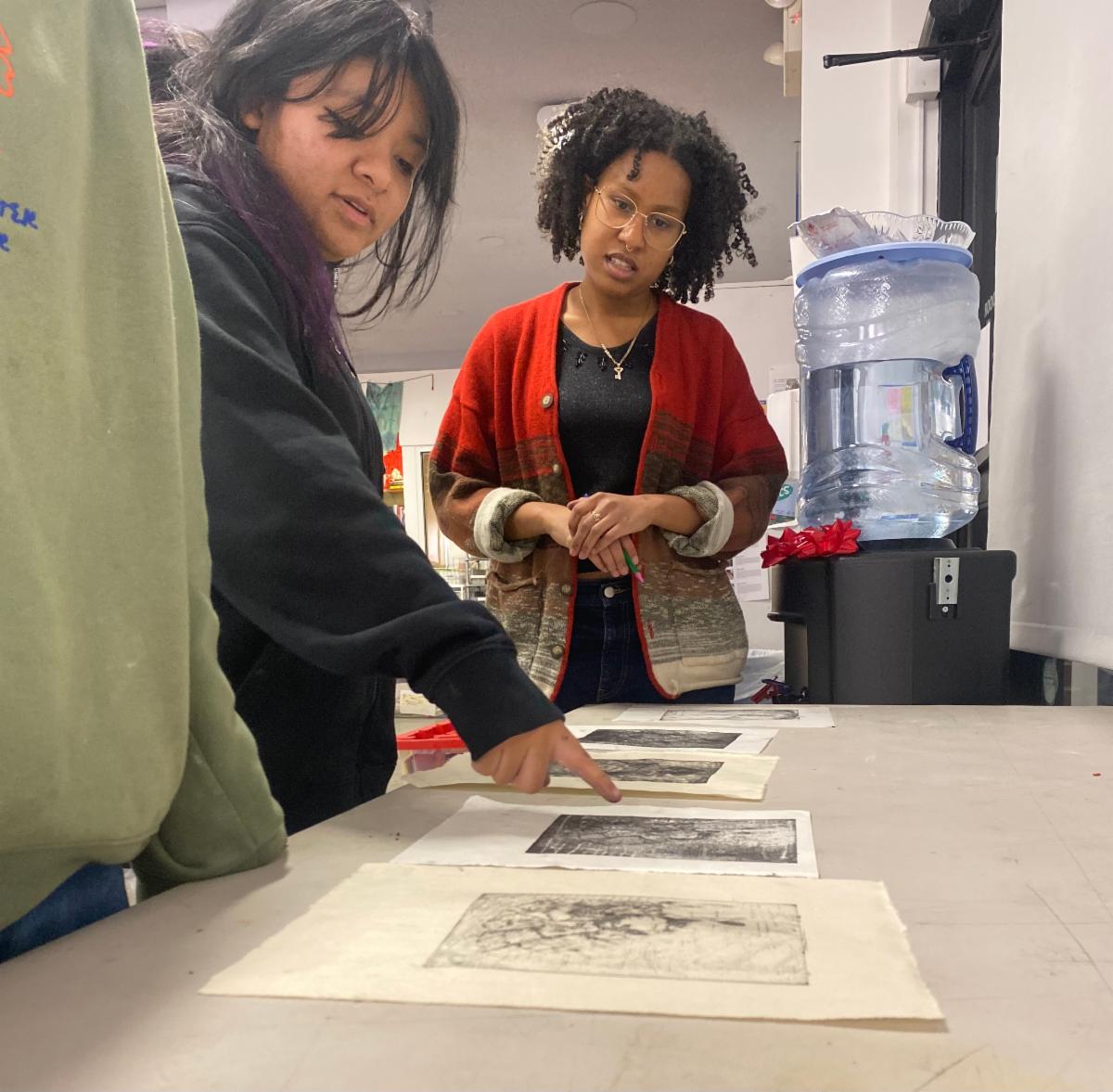 |  |   | Above: Daniella teens look at finished prints with teens |    | During Wintersession, RISD Brown Dual Degree student Daniella Pozo (BRDD 2027, Printmaking, Urban Studies) lead a three-part, pop-up workshop series introducing teens to three distinct methods of printmaking: risograph, intaglio, and lithography.
