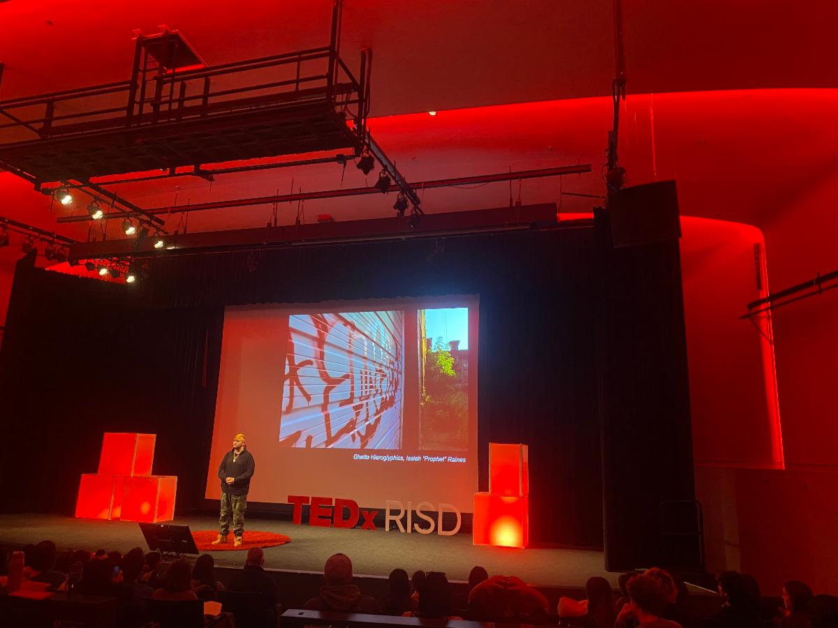 Prophet (RISD Sculpture 2025) has been a POD Teaching Assistant for two years. In early March, he gave an incredibly powerful talk for TEDxRISD called "The Prophecy: How to Save the Hood" about his hometown of Fall River, MA and his experiences with gentrification and artwashing.