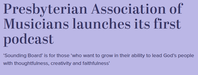 “Sounding Board,” a new podcast that the Presbyterian Association of Musicians [launched this month], aims to reach those who love the church, care about the quality and integrity of worship, and want to grow in their ability to lead God’s people with thoughtfulness, creativity and faithfulness.