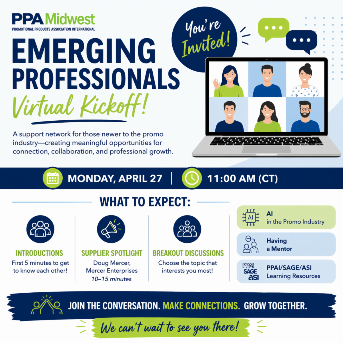 This virtual kickoff is designed for those newer to the promotional products industry who are looking to connect, learn, and grow alongside their peers. Our goal is to create meaningful opportunities for collaboration, conversation, and professional development—and this is just the beginning.