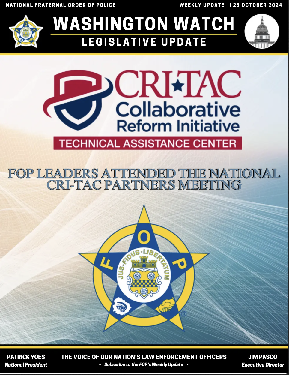 Please make it a point to check out Washington Watch — a weekly news update provided by the National FOP. We encourage PPOA members to stay up to date on the legislative news and activity impacting public safety personnel nationwide.