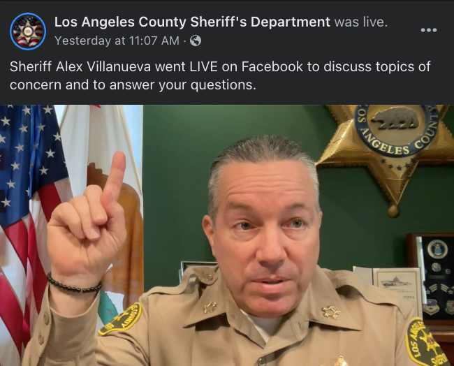 December 8: Sheriff Villanueva hosted a Facebook live stream on Wednesday to discuss current issues, including the policies of LA County District Attorney George Gascon, redistricting for County Supervisors and more.