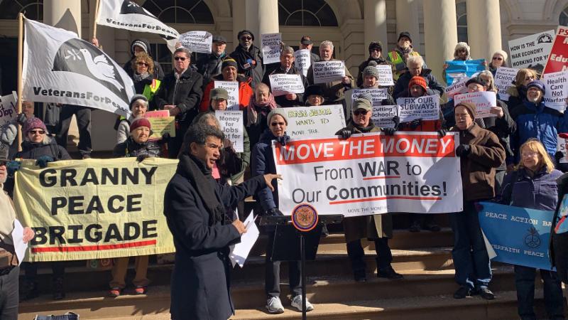 New York, NY-- This morning outside New York City Hall Council Member Ydanis Rodriguez was joined by the Move the Money Coalition, comprised of Veterans for Peace Chapter 34-NYC, Brooklyn for Peace, U.S. Labor Against the War - NYC Chapter, Domestic Workers United, Queens Peace Council, New York State Peace Action, NY State Nurses Association, CODEPINK, and members of Judson Memorial Church, plus more, for a rally urging Members of Congress and the federal government to move significant funds from the military budget to human needs and services. Municipalities rely on federal grants and discretionary funds to operate a multitude of City programs from our public schools to healthcare services to public housing to investments in infrastructure. Council Member Rodriguez recently introduced Resolution 747, to call on Members of Congress and the federal government to reduce the amount of federal funding allocated to defense spending and focuses on how the federal defense budget restricts local spending on essential social and public services in the City of New York.