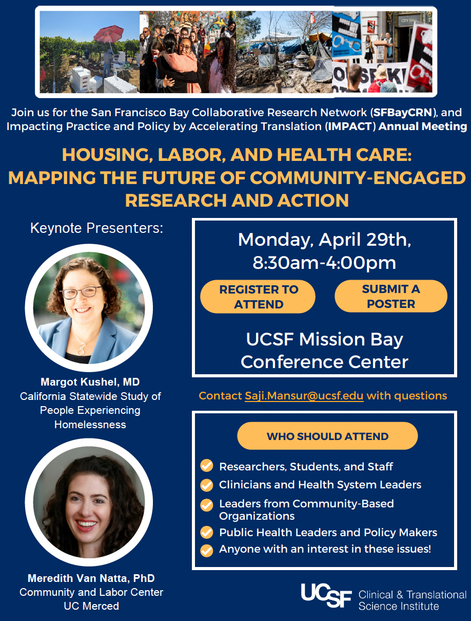 The San Francisco Bay Collaborative Research Network (SFBayCRN) and the UCSF Impacting Practice and Policy by Accelerating Translation Program (IMPACT) present: