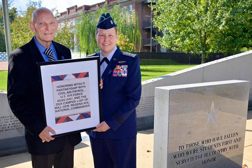 Maj. Gen. Regena Aye, national commander/CEO of Civil Air Patrol, recently paid a visit to Middle Tennessee State University in Murfreesboro to celebrate the decade-long partnership between the two institutions.