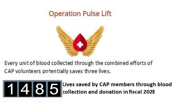 For more information, go to Operation Pulse Lift's new webpage on GoCivilAirPatrol.com. There you will find the latest Blood Donation Center schedules, instructions on how to set up a BDC, and other mission information. | |