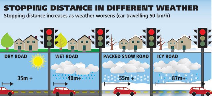 - Expect icy patches, especially in intersections