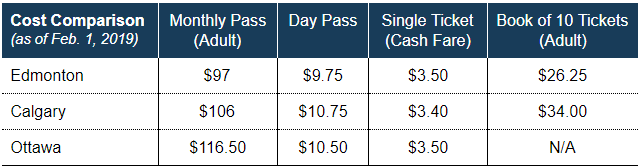 ETS fares remain competitive with those in other Canadian municipalities of a similar size.