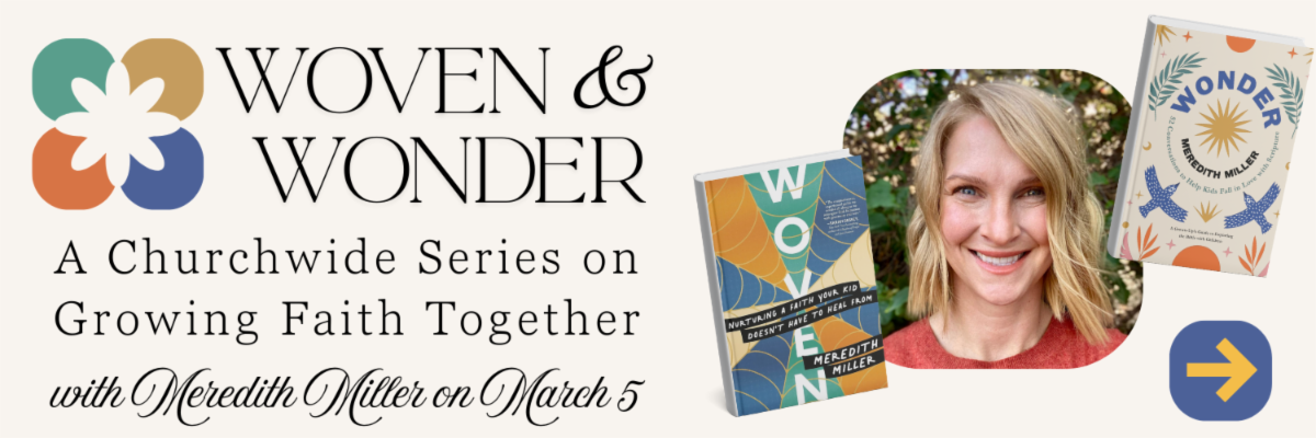 If you are walking alongside children in everyday moments, this evening session is for you. It is also a welcoming space for anyone who wants to reflect on their own experiences of faith and consider how faith is formed and examined over time. Together, we will explore how children experience and build faith, along with practical, grace-filled ways adults can support that growth. Drawing from her book Woven, Meredith offers encouragement that honors both the wonder of faith and the realities of daily life, helping adults see their everyday presence as meaningful and formative.