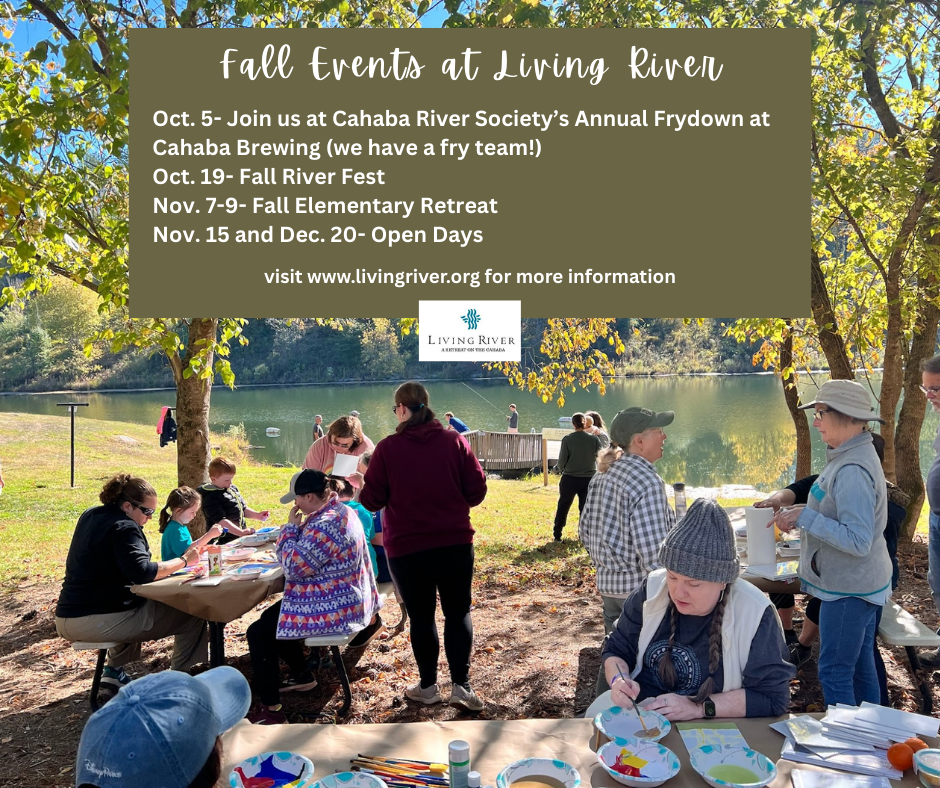 Other upcoming events are the Cahaba River FryDown (Oct. 5th- Living River will have a FryTeam, so come support Cahaba River Society and vote for us!)