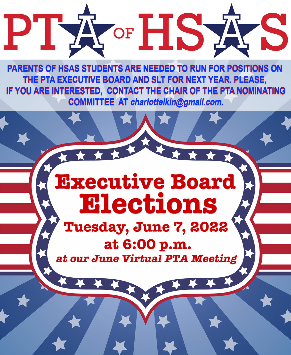 May 17 (Tue) - PTA Meeting at 6 p.m. Presenting proposed 2022-2023 budget.