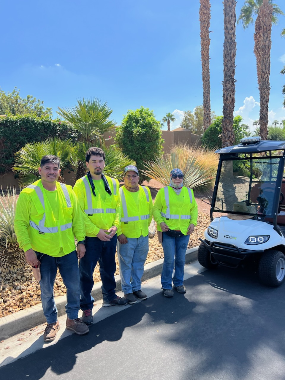 To help homeowners easily identify PWLC II staff members, we’ve included a photo below of several employees in uniform. Please keep in mind that for the landscape crews to stay on schedule, they are not able to take direction from residents, nor provide customized landscaping. If you have a particular request, please utilize the work order system, which can be accessed via the Association’s website, pgawest.org, or you may call the office at (760) 771-1234.