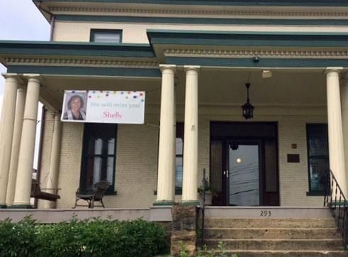 On June 12, an Open House was held at the WVU Campus Ministry Center to say goodbye to Shelly Barrick Parsons and celebrate her and her ministry these past 15+ years in Morgantown. Pictured at right are the sign that decorated the building's front porch and the goodbye cake. Best wishes, Shelly!