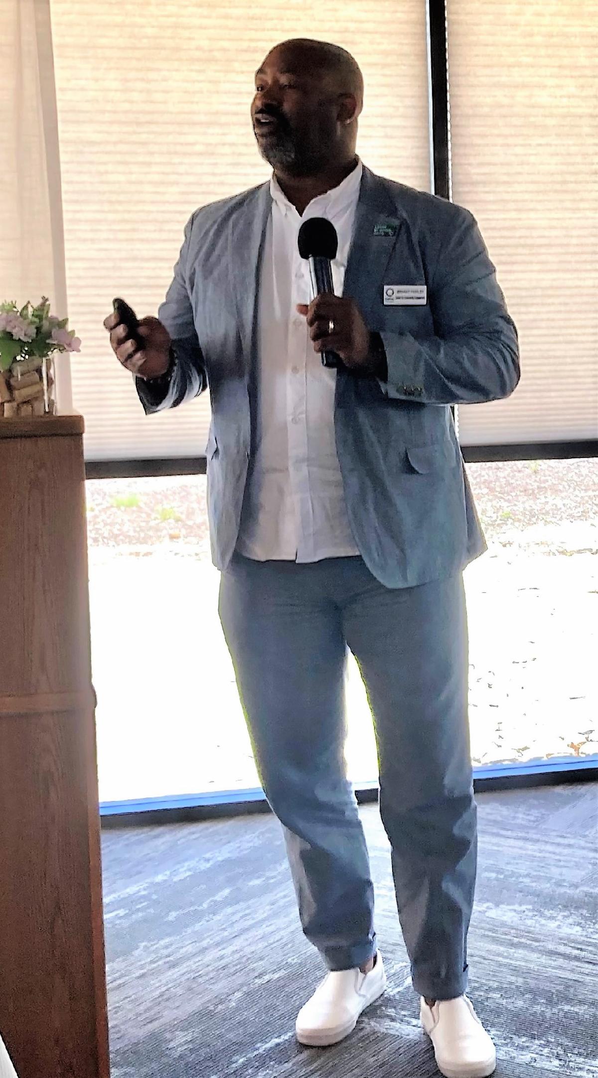 Our guest speaker was Bryant Fairley, Director of The Center for Community Engagement. He discussed how the center connects students with opportunities to Learn By Doing Good. They combine academics with practical experience and now community involvement. His talk was enlightening and encouraging.