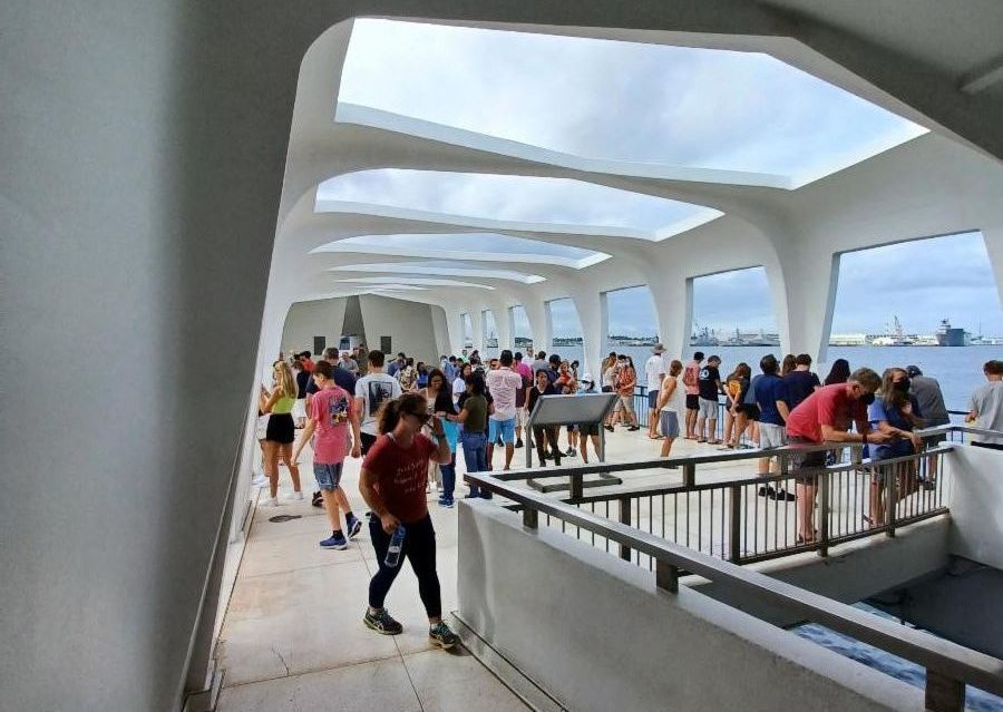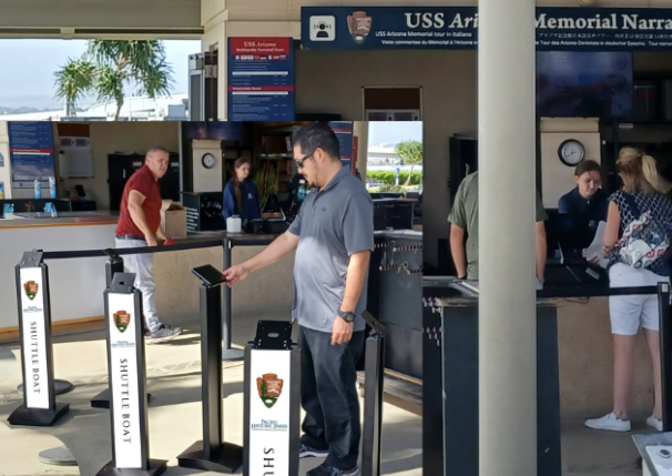 For day-of reservations, please visit our Pacific Historic Parks Audio Tour Desk to join the Arizona Memorial Virtual Standby Queue. This service is free and allows guests who don't have advance reservations to visit the USS Arizona Memorial when available.