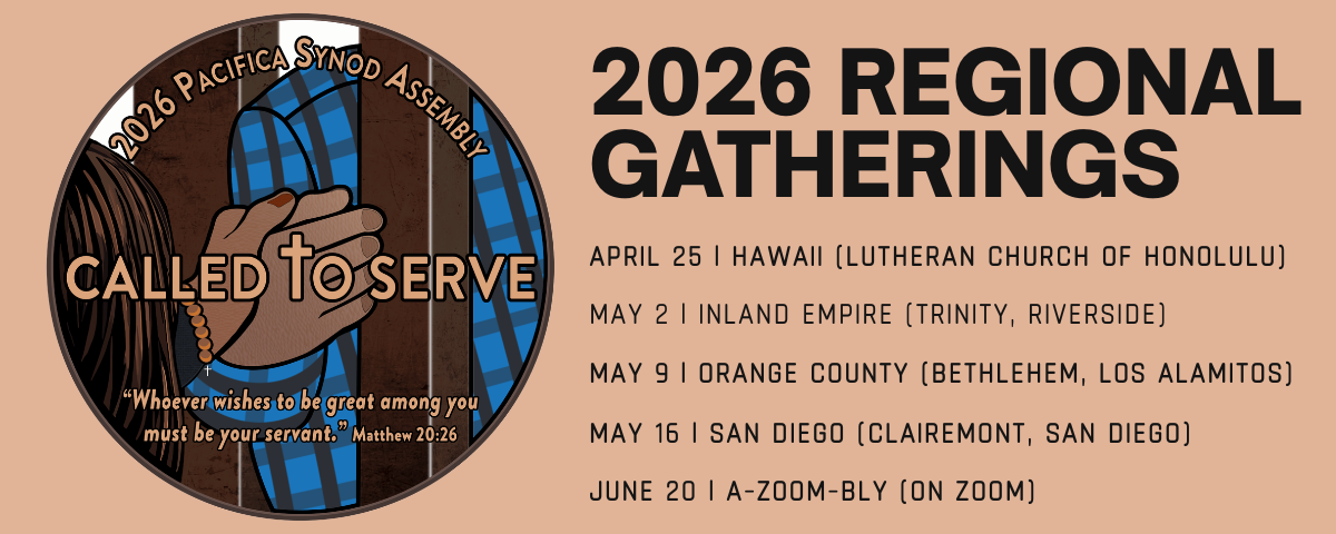 For more information about the Regional Gatherings--as well as our online Synod Assembly ("A-Zoom-bly") on June 20, 2026--visit the Pacifica Synod website. The A-Zoom-bly is to be attended by voting members ONLY, while Regional Gatherings are open for ALL to attend.