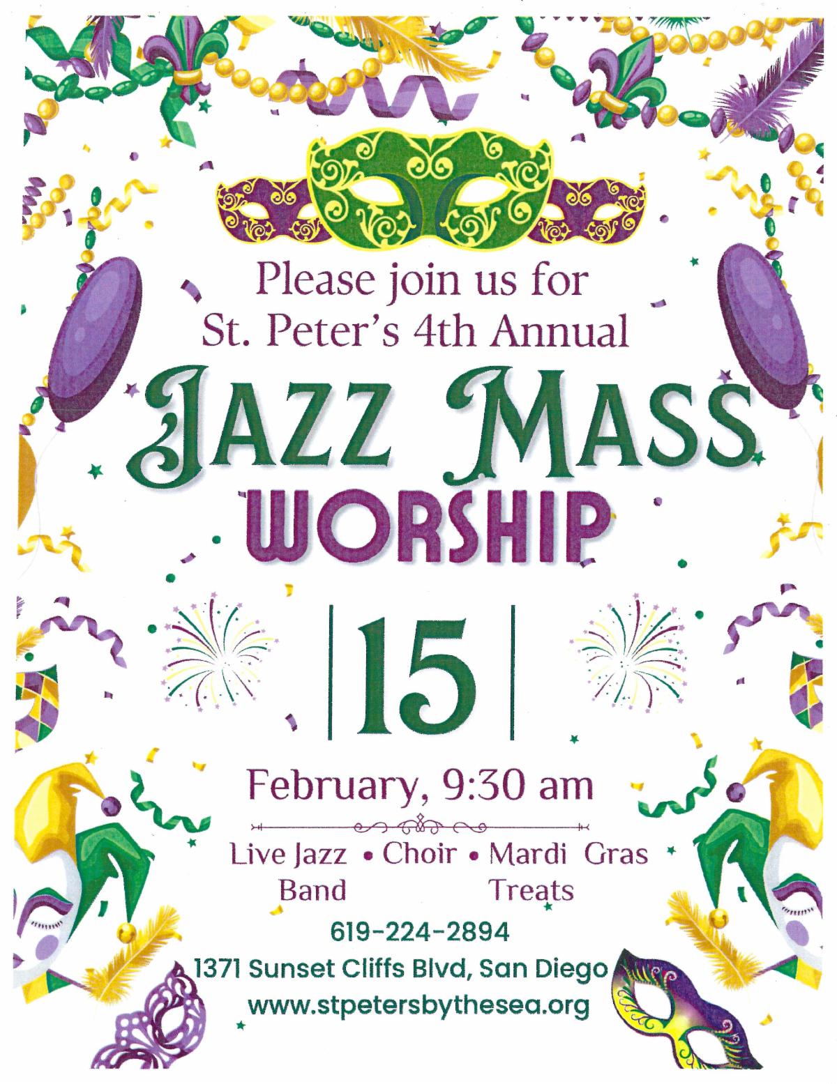 February 15th is the last Sunday before Lent begins on Ash Wednesday; thus, it is only fitting that we have the Jazz Mass on this particular Sunday.