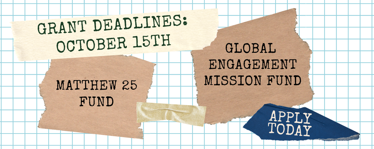 The deadlines for this year's Matthew 25 Fund and Global Engagement Mission (GEM) Fund grants are rapidly approaching! You have just under one week to turn in your applications for these grants before the October 15th deadline. Visit the links above or click on the buttons below for specifics on applying! | | |