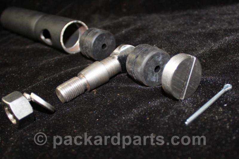 1935-36 120 models and 1937-47 all models all had front stabilizers with “fixed” end links that were rubber vulcanized to the stabilizer bar. As the rubber deteriorates, the “fixed" end links were not replaceable and a re-vulcanizing service was not available. The option was to replace the entire assembly, IF a new unit could be found. We made new end links with screw caps and internal rubber pads on them, allowing these new end links to be easily attached to the existing stabilizer bar.