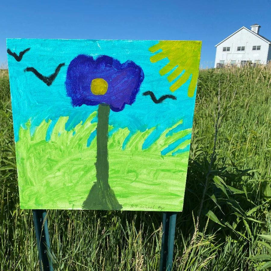 An observation: our younger Prairie Art artists bring all sorts of freedom and exuberance to their artwork--like this fun example currently on display at the Wallace Farm. Kids of all ages submitted 80+ themed "Prairie Grasses & Flowers" paintings on 2' x 2' plywood boards this year. The boards are sealed and then mounted on fence posts along the one-mile prairie path.