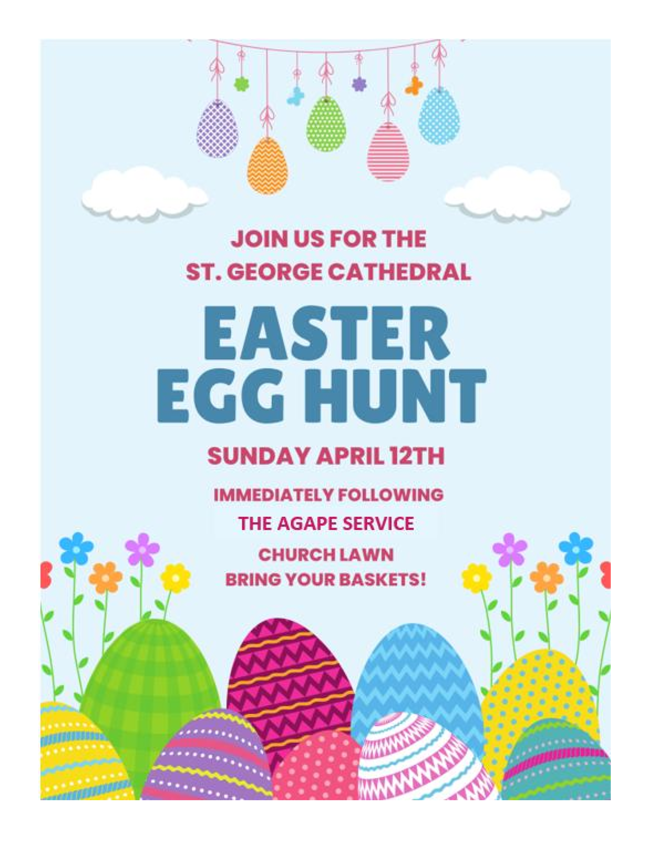 PASCHA EGGS – The Anagennesis Ladies are asking for individuals to donate one or two dozen red, cooked eggs for Pascha. Eggs should be delivered to the Church during Holy Week, Holy Monday, April 6th through Holy Saturday, April 11th between 9am and 4pm. Your response to this appeal is greatly appreciated.