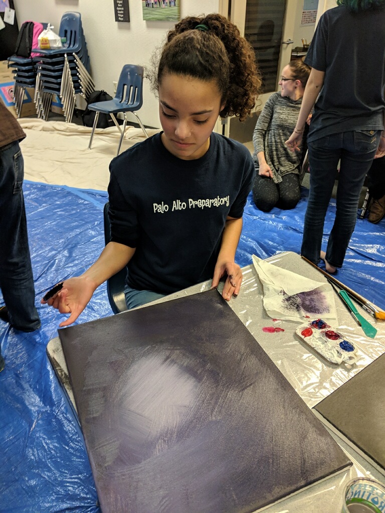 In the Mural Painting class myself and a small group of students will create a new mural for the back of the school. We will work together to cover the previous mural, plan a new design that represents Palo Alto Preparatory, and paint our new composition. If you have experience drawing or painting and are interested in getting your hands (and possibly clothes) covered in paint while you practice creating art on a large scale, this class is for you.