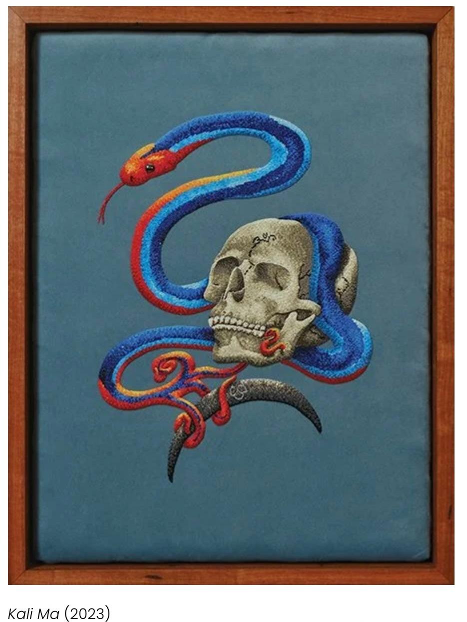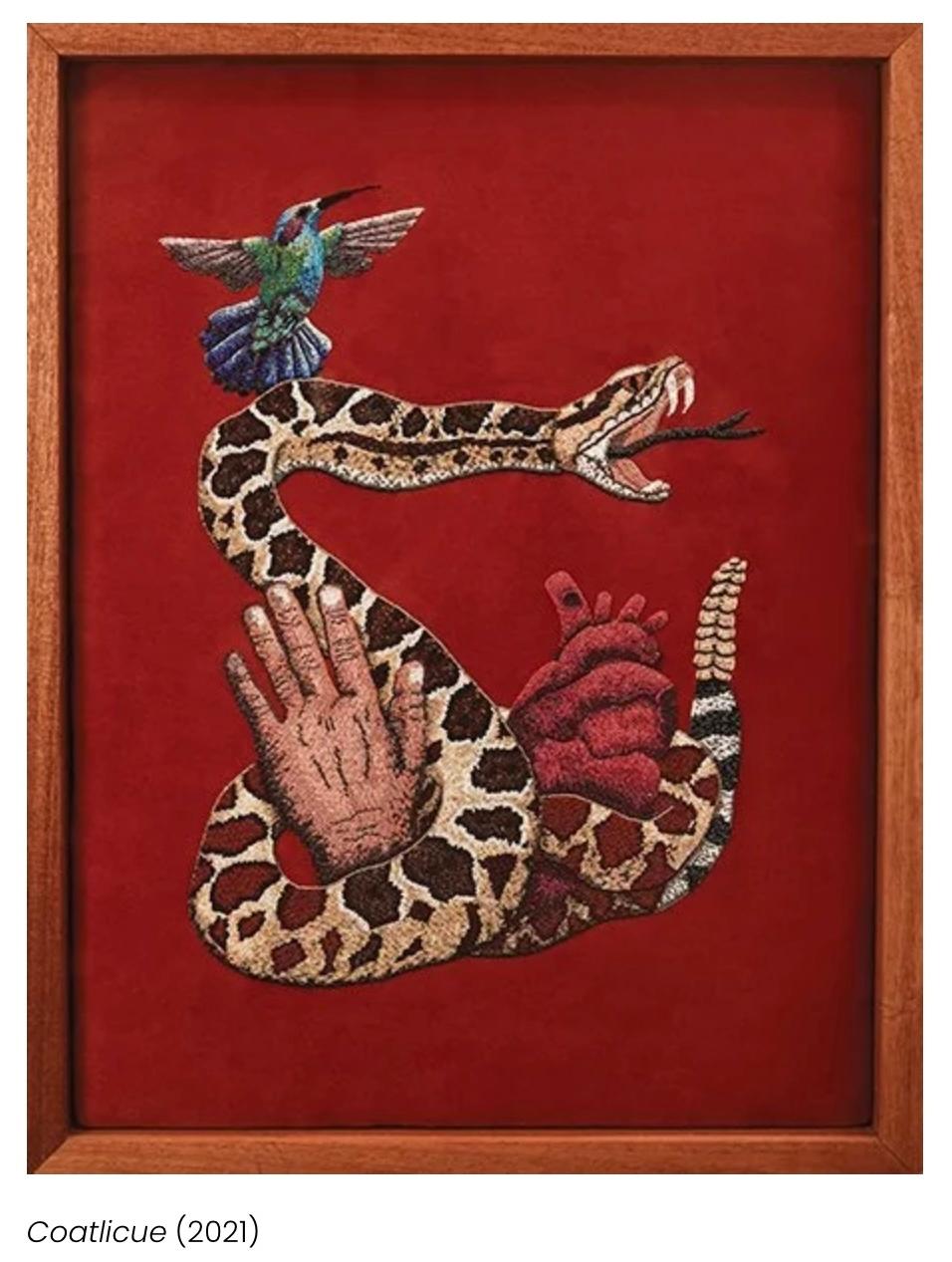 Holley Bakich is a multi-faceted artist who wants to tell you a story—either an ancient myth, a religious epiphany, or a tale of a remarkable person—in images and symbols. Craftsmanship, through the use of traditional processes, is her goal. Using beads, sequins, metal leaf as well as leather and fabric, Holley draws upon mythologies and stories from all over the world. The materials, all hand-sewn on leather, fabric or wood take time and patience giving each artwork a part of herself through the meditative creative process. The materials she selects have a tactile quality that elevates the image above two dimensions, shaping and forming the material to last for hundreds of years.