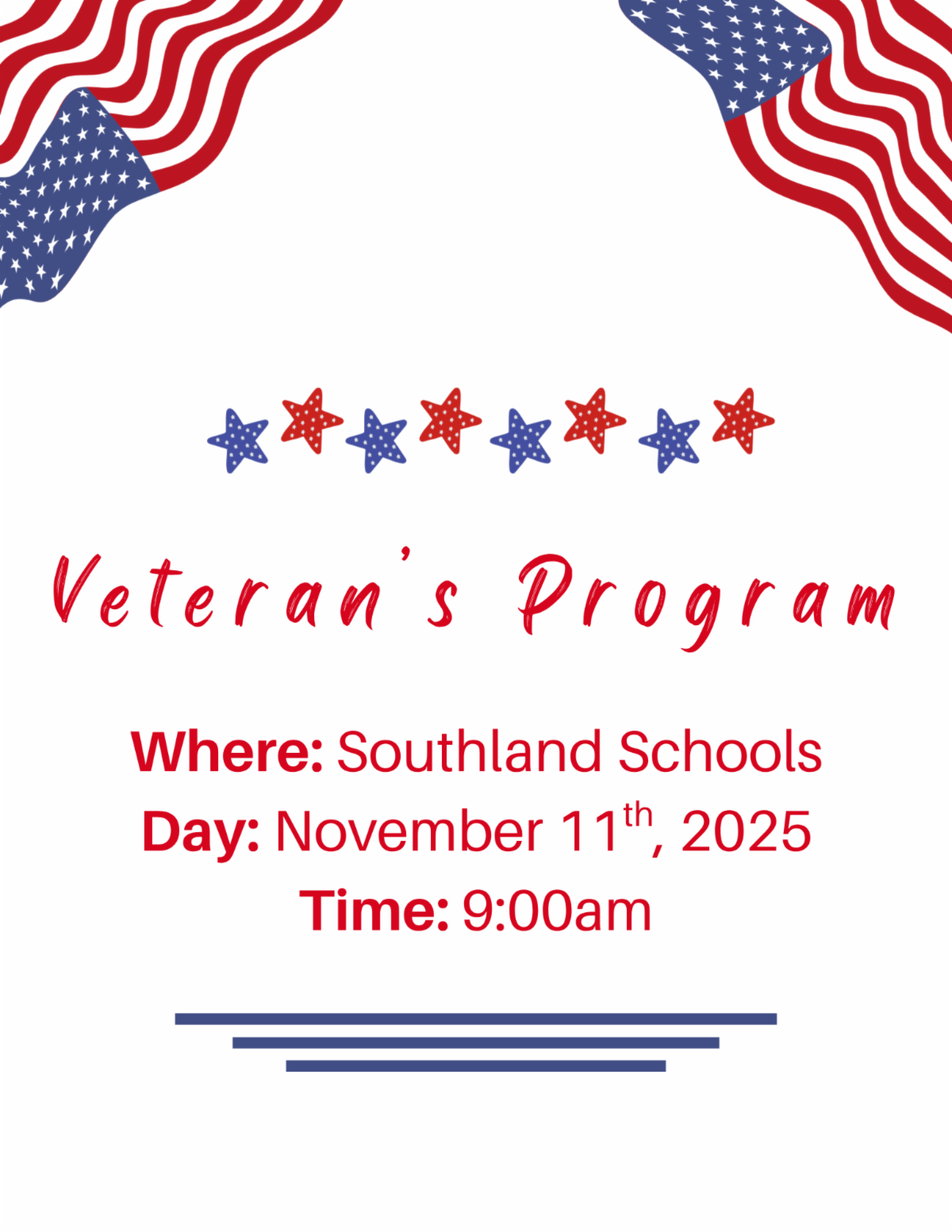 The students and staff at Southland invite you to celebrate Veterans Day with us.