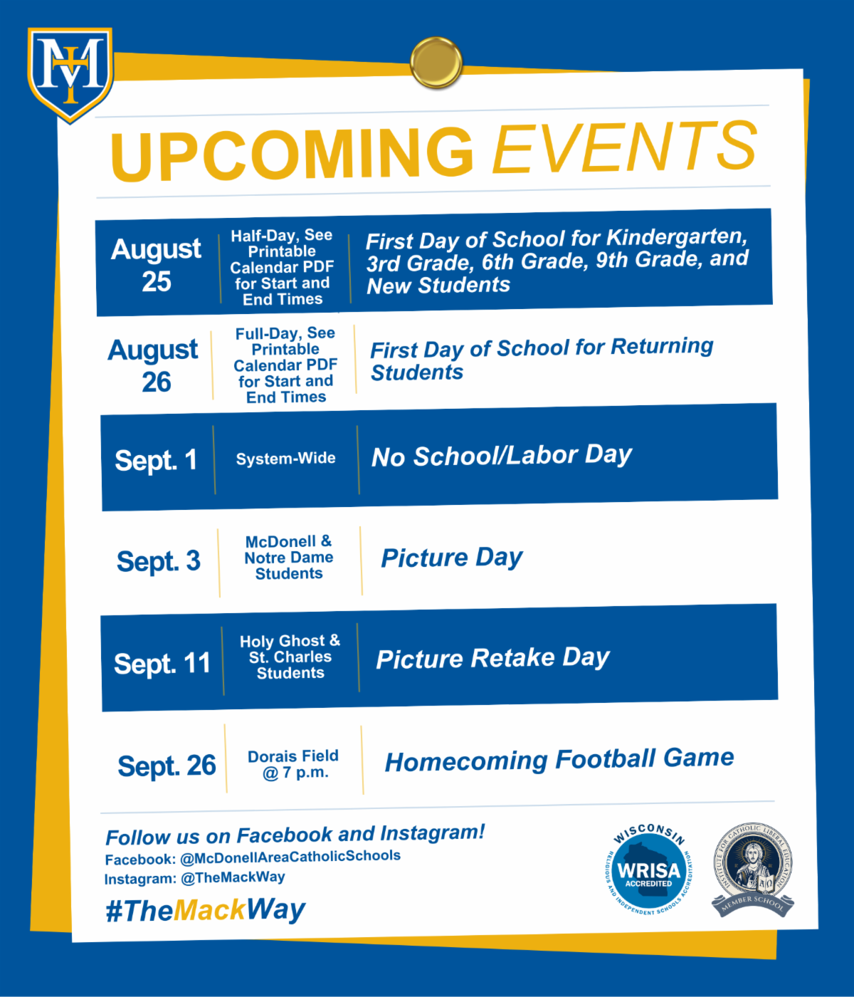 As we look ahead, we are excited to welcome our new students on Monday and our returning students on Tuesday. Thank you for being an important part of our community—let’s make it a wonderful year together!