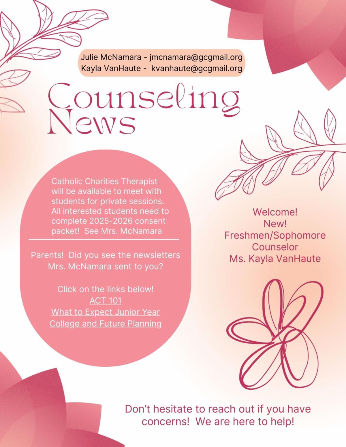My name is Kayla Van Haute, and I am the new school counselor at Gross High School. I am an alum from the Class of 2018, and I am so excited to be back! I will be working primarily with freshmen and sophomores but am available to provide support to all students. I am looking forward to meeting more of you this school year. Please do not hesitate to reach out to me any time!