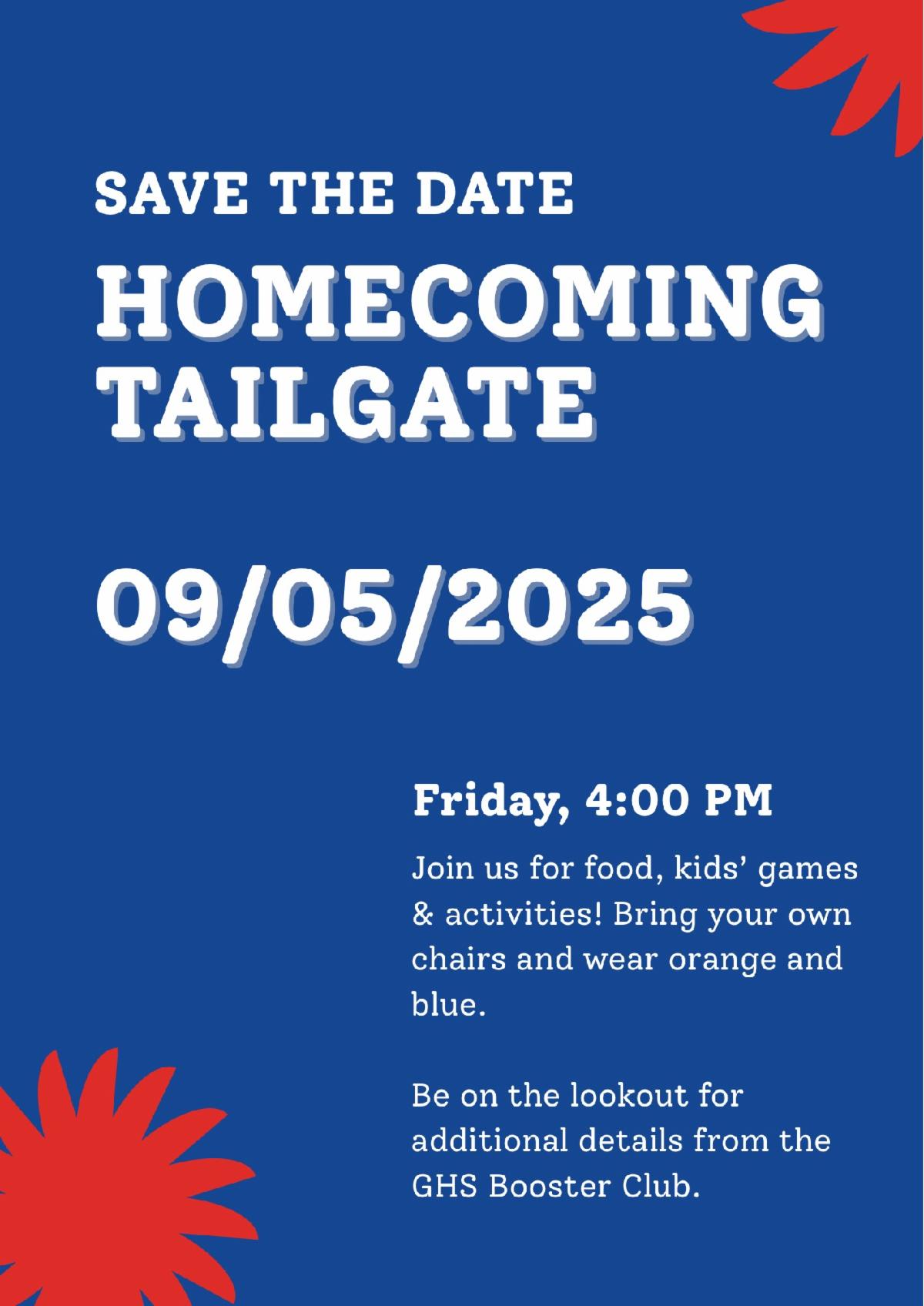 Sept 5 - Homecoming Tailgate 4PM & Football Game 7PM