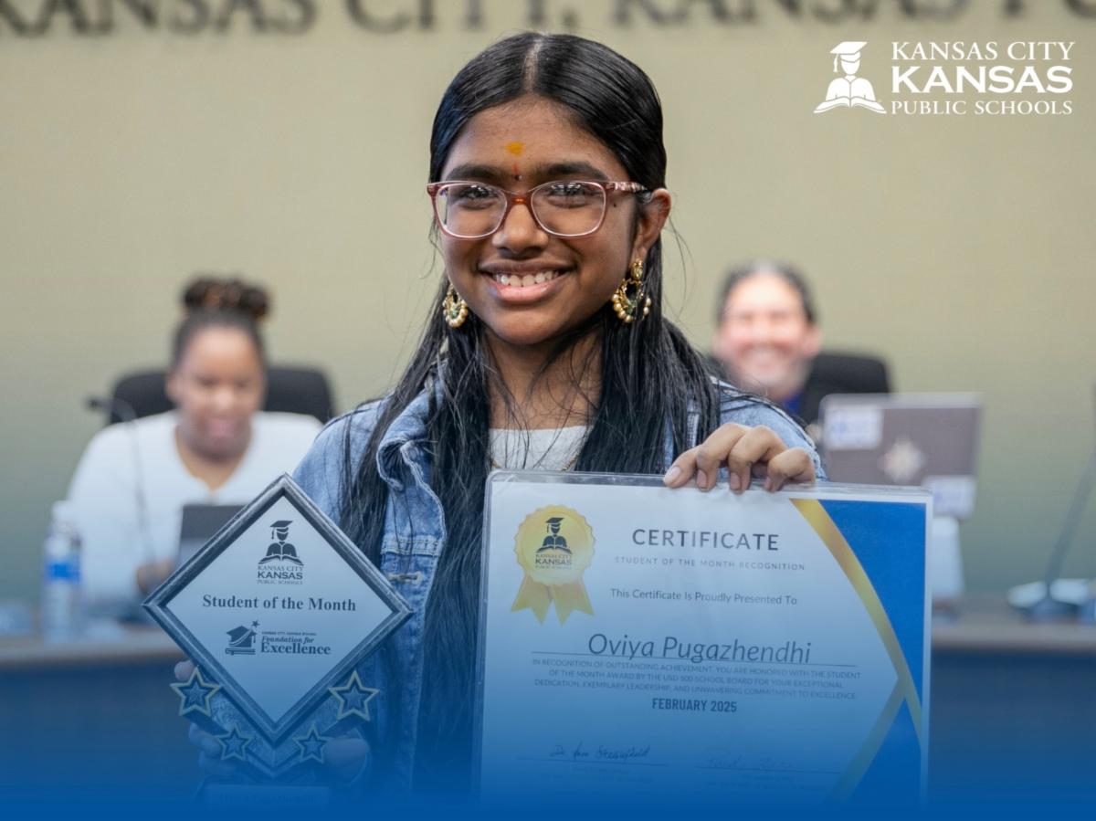 Oviya is an 8th-grade student at Sumner Academy, and was recognized for her achievements in the Spelling Bee, as nominated by Patricia Bernard, AP.