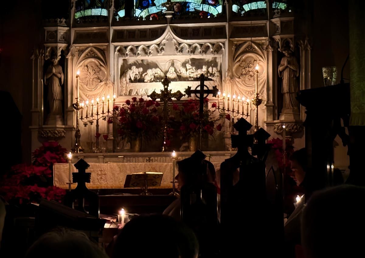 | | Christmas Eve Altar by candlelight, photo by Noom Baggett | |