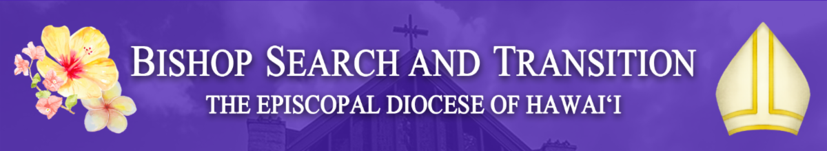 The Standing Committee of the Episcopal Diocese of Hawai'i is pleased to announce the slate of candidates from the Search Committee, presented for election of our Sixth Bishop. We recognize and express our sincere gratitude for the skillful discernment of the Search Committee and their reliance on the Holy Spirit. We encourage everyone to express their thanks to each of the Search Committee members.