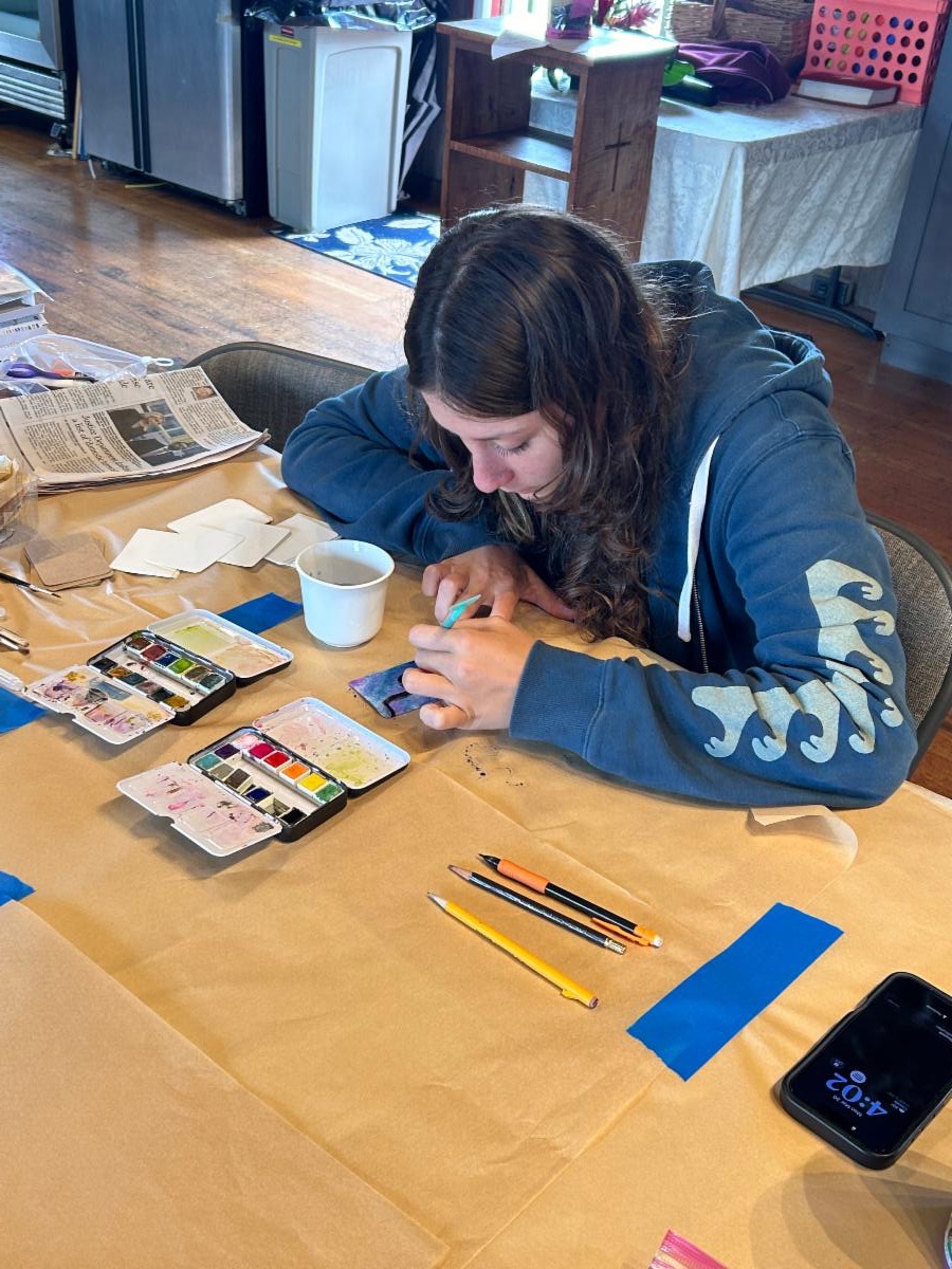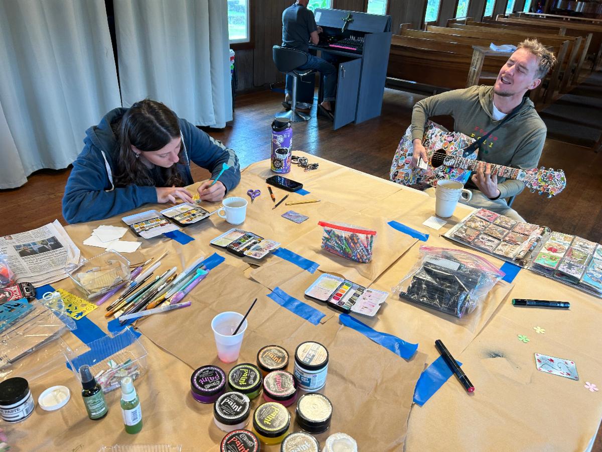 St James youth group was blessed by the creativity and immense collection of art supplies that Odetta brings with her wherever she goes. Odetta shares scripture and also her ATC cards that inspired all whom participated. Thank you as well to Logan for blessing us all with his guitar, lyrics and boundless humor. We will be meeting next week at our normal time on Monday April 6 at 3:30 in the youth hut. There are some big changes happening at the church right now with the new building coming and our new tent up so we're going to see how we can help in that process and also eat a good meal. Please come join in the fun.