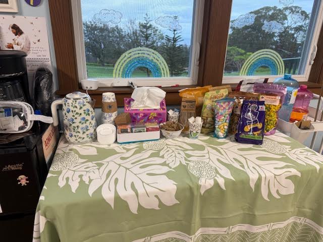 The Julian of Norwich Chapter of The Order of the Daughters of the King held their first 24 hour prayer vigil beginning March 31st through April 1st at St. Columba’s. The Keiki room was transformed into a prayer inspiring cozy area for 24 continuous hours. Prayer stations lined the room with activities that helped bring prayers to action. The back prayer room provided a soft place to sit and melt into our discussion with the Lord.
