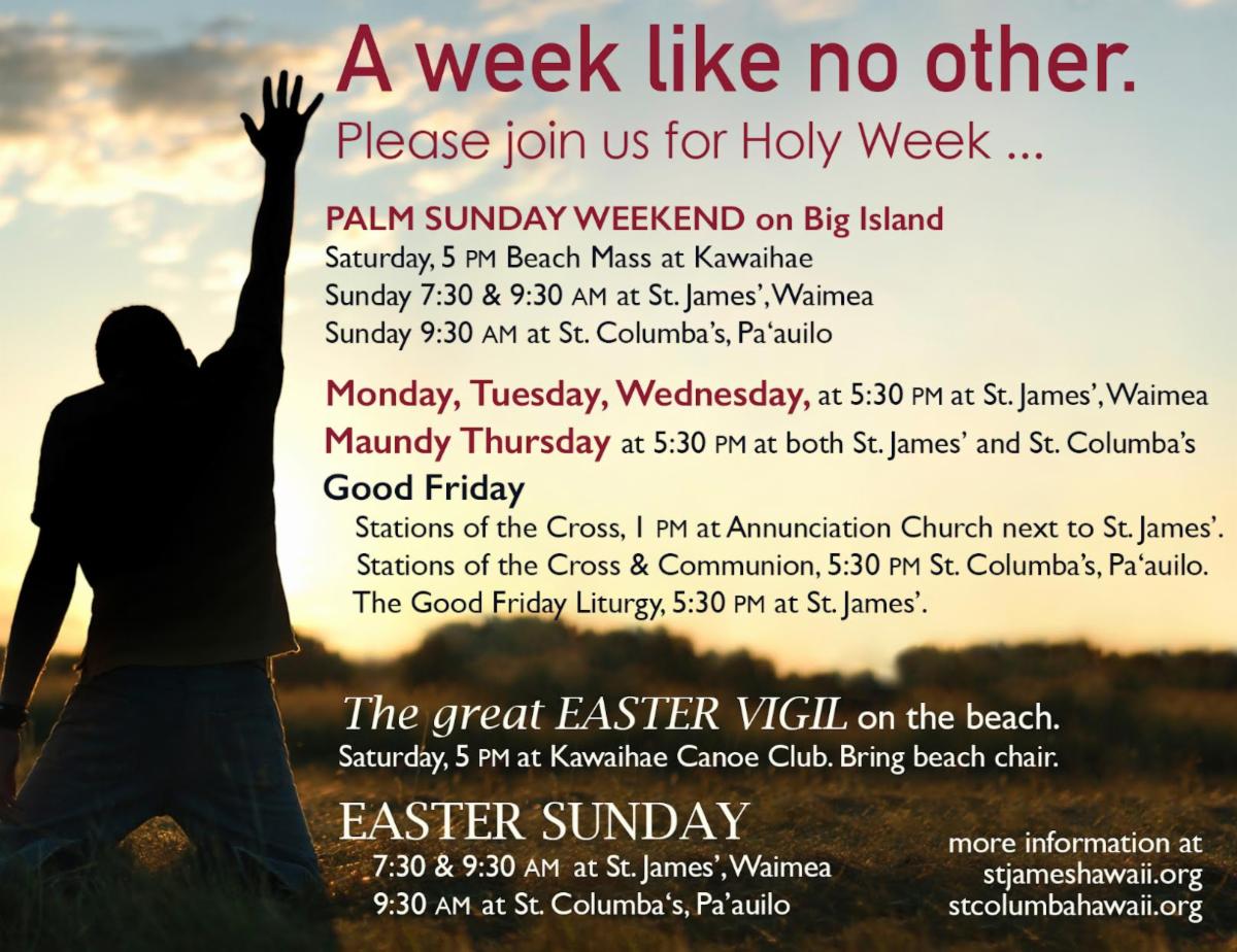 On Easter Sunday Father David will have a special Easter message for Keiki in lieu of Godly Play. Nursery will be open for children under 5.