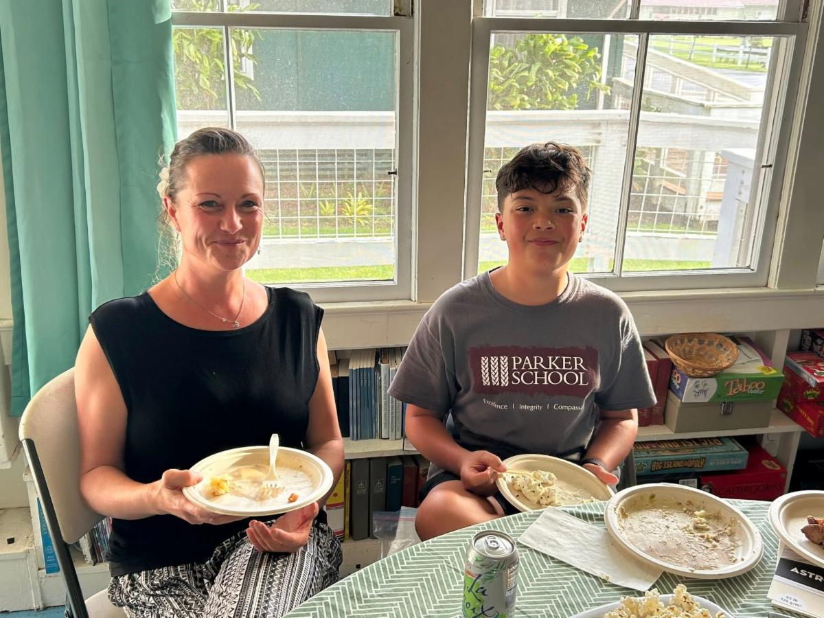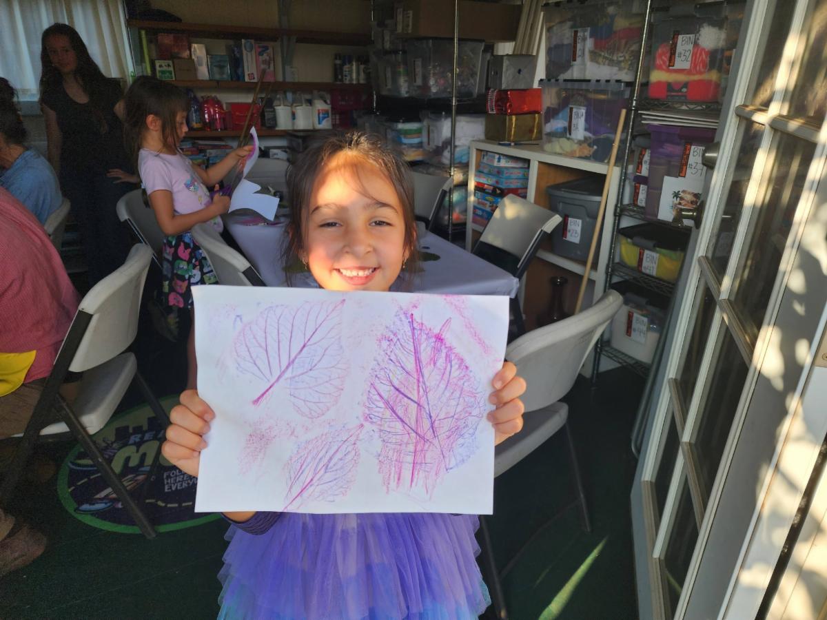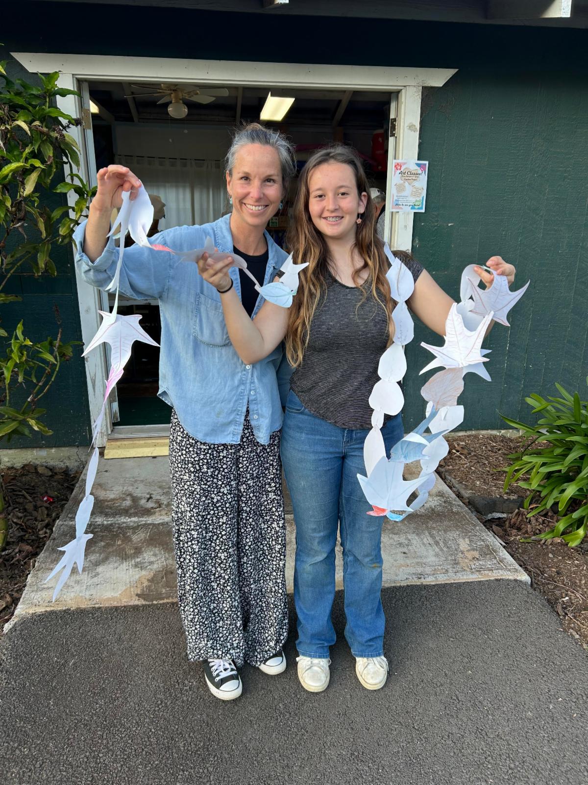 Thursday was Zara Kurap’s last week at the community meal and she outdid herself with an over 30 foot lei made out of custom leaves that were hand printed onto plain paper. The kids used diferent mediums to transfer images from a wide selection of leaves that Kara brought with her. After much joy and creativity they ended the evening with the final few students who ended the night walking the lei through those still eating at the community meal. Huge thanks go out again to Zara and also all of the HPA middle school staff that helped her bring the month long program together.