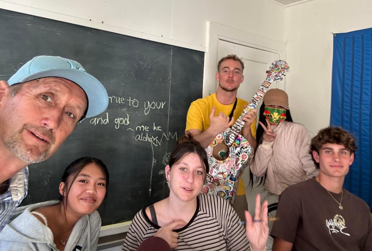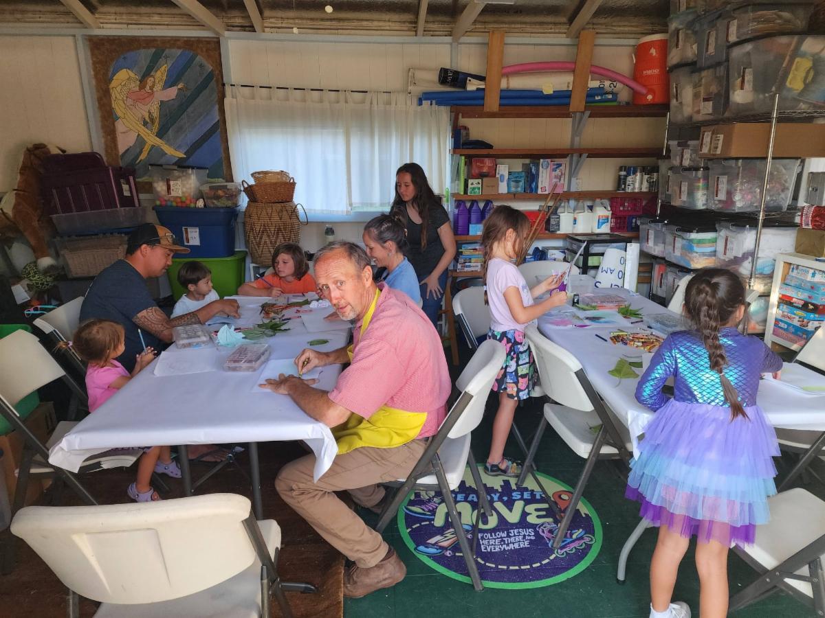 Music and Art filled the Spencer building last Monday night at the weekly youth group. Everyone brought their talents to the round table and started planning for future musical sessions together. We were blessed by Logan and his HAPPY CHAIR guitar playing that had the youth laughing all night long. We also had a solo Uke session where Zach played his personal version of Hokule’a that he learned by ear. Aria shared her custom tracks she had just cut that afternoon in the studio and finished the night off sharing her singing at the cathedral in Oahu. All this time Kathy led everyone down the art path doing custom paintings from scratch and we ate beautiful food donated by Sharon from the community meal. Next Monday we’ll be meeting at 3:15 at the church and walking down to Pau pizza. Or just drop in at Pau when you are ready.