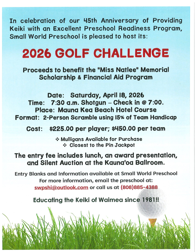Saturday, March 7 at the Spencer Kalani Schutte District Park in Waimea.