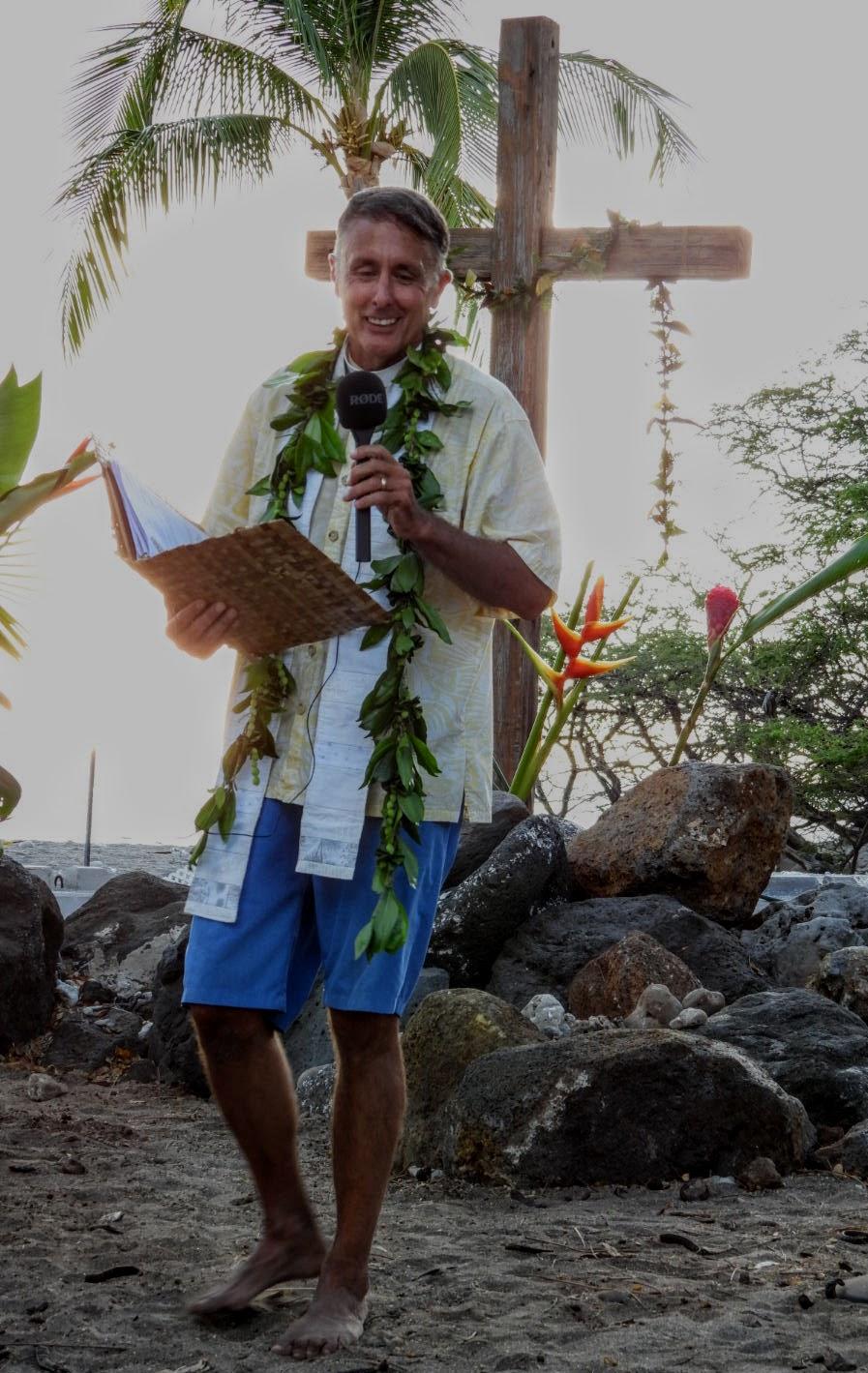 5 PM. Held at Kawaihae Canoe Club. Bring a beach chair or towel. The service will include the baptism of six-month-old Marion May, daughter of Astrid and Chris Caruso-Lynch.