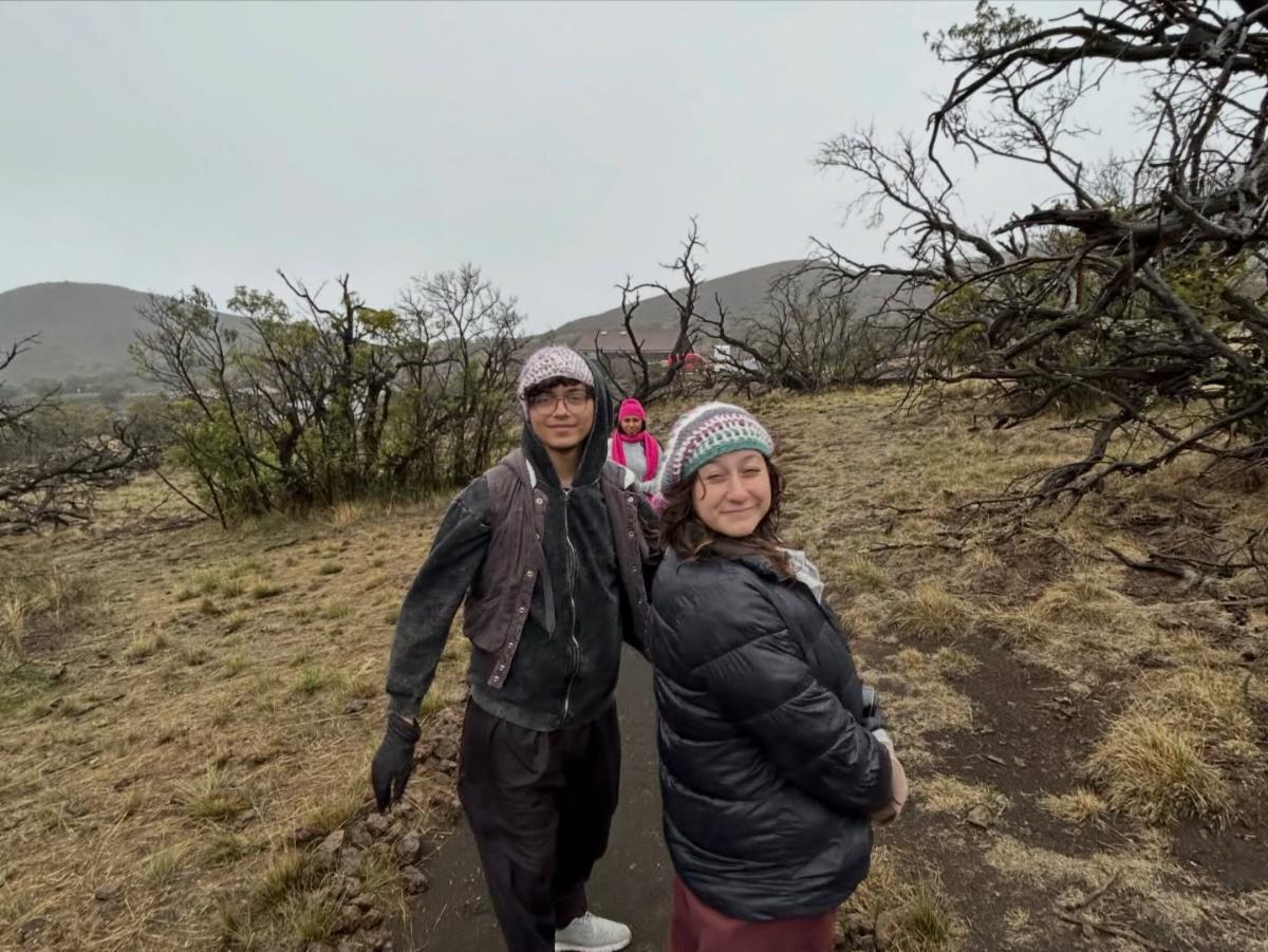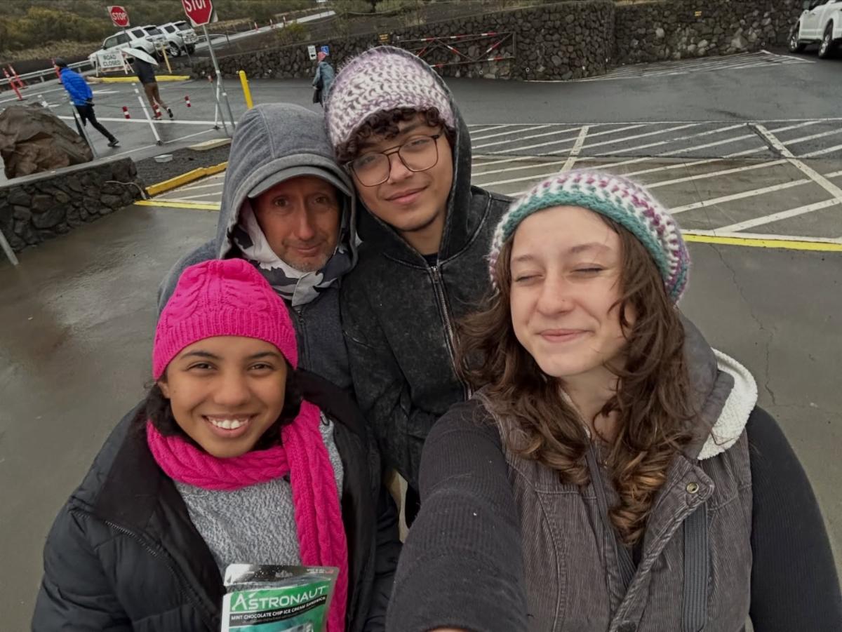 Driven by the love of friends, the St James’ youth group rallied this last Monday to chase snow on Mauna Kea. Mohamed the exchange student from Jordan was set to return to his home country and the group wanted to get him one more good adventure, as close to God as possible, before he went home. Everyone bundled to the max and headed for the summit. En route the group had an outrageous interpretive walk where Solana (student at Kanu) identified a large number of the native species plants and even one of the native birds as we walked. It was a beautiful send off to a beautiful young man headed back to his parents in Jordan.