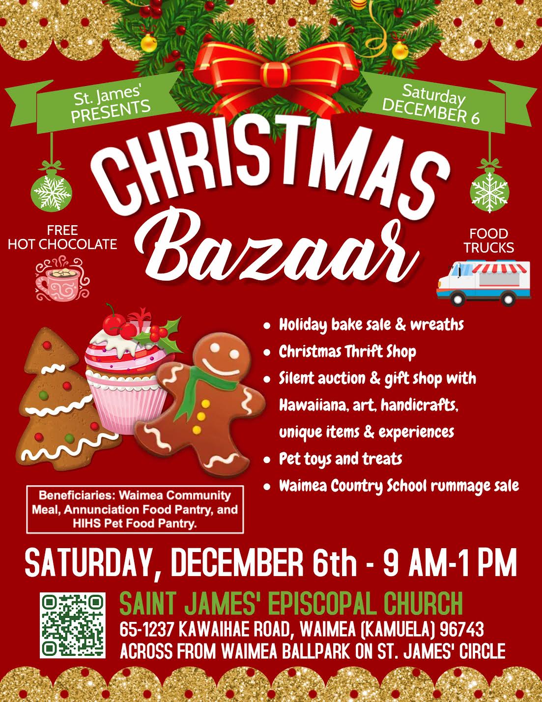 I am hoping you all have had a chance to read the email sent out earlier this week regarding our entering into escrow on the Chock property next door to St. James'. Oh my, what a blessing. We are being given another beautiful opportunity to dream and hope about the ways we can expand our sharing of God's grace and mercy through our ministries and partnerships. It has been an extra-full couple of weeks for several of you who have been working so hard behind the scenes to help make this possible. Mahalo to each of you. There is much more ahead of us, and we will work to ensure our parish 'ohana is kept informed of the progress. This could certainly make our Parish Annual Meeting on January 23 feel even more joyful!