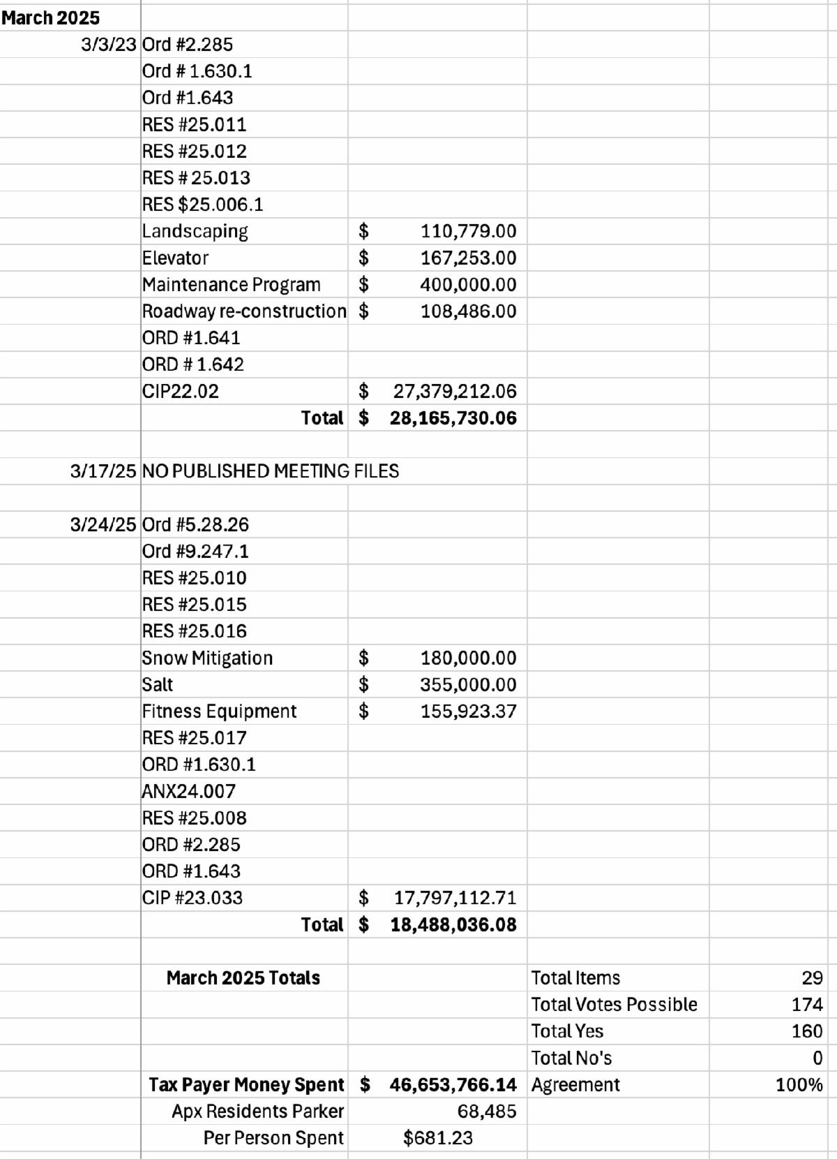 The March 3rd and 24th meetings, as detailed in the council minutes, were a snooze-fest of unanimous votes. A whopping 29 items, 160 “yes” votes, and zero “no” votes. Not a single council member, Barrington, Diak, Frandsen, Hefta, Hendreks, or Wilks—had the spine to dissent. They greenlit everything from a $27.4 million Lincoln Avenue and Jordan Road widening project to a $17.8 million Stroh Road expansion. That’s $46.6 million total, or $681 per Parker resident. You’re welcome for the bill, folks.
