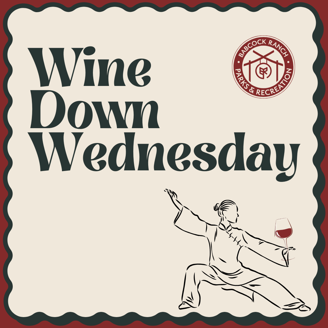 Wine Down Wednesday Tai Chi at the Bandshell. Enjoy a low-impact class to improve strength, balance, and flexibility, followed by a complimentary glass of wine. Connect with others and unwind in a relaxed, welcoming setting.