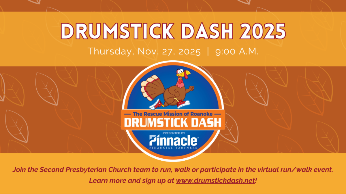 Middle school youth are collecting all canned goods through Sunday, November 16 for the Presbyterian Community Center’s Hunger Buster Initiative as they stock their shelves to share with neighbors in Southeast Roanoke and beyond. You may pick up your donation bag (take as many as you can fill) from the sanctuary on Sundays or from the front desk on weekdays. Return your filled bag(s) to the stage in Fellowship Hall by Sunday, Nov. 16. Thank you for helping to feed those in need in Roanoke!
